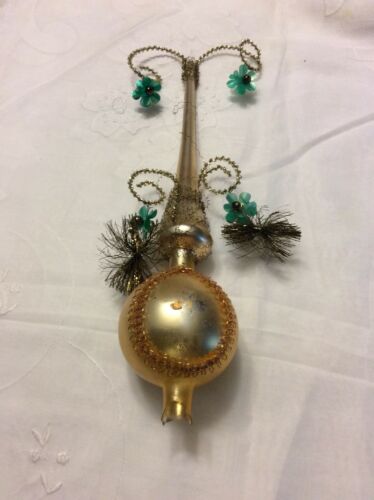 Title (ebay affiliate link): Vintage Christmas Glass Wire Wrapped Tree Topper with Tinsel & Green Flowers
