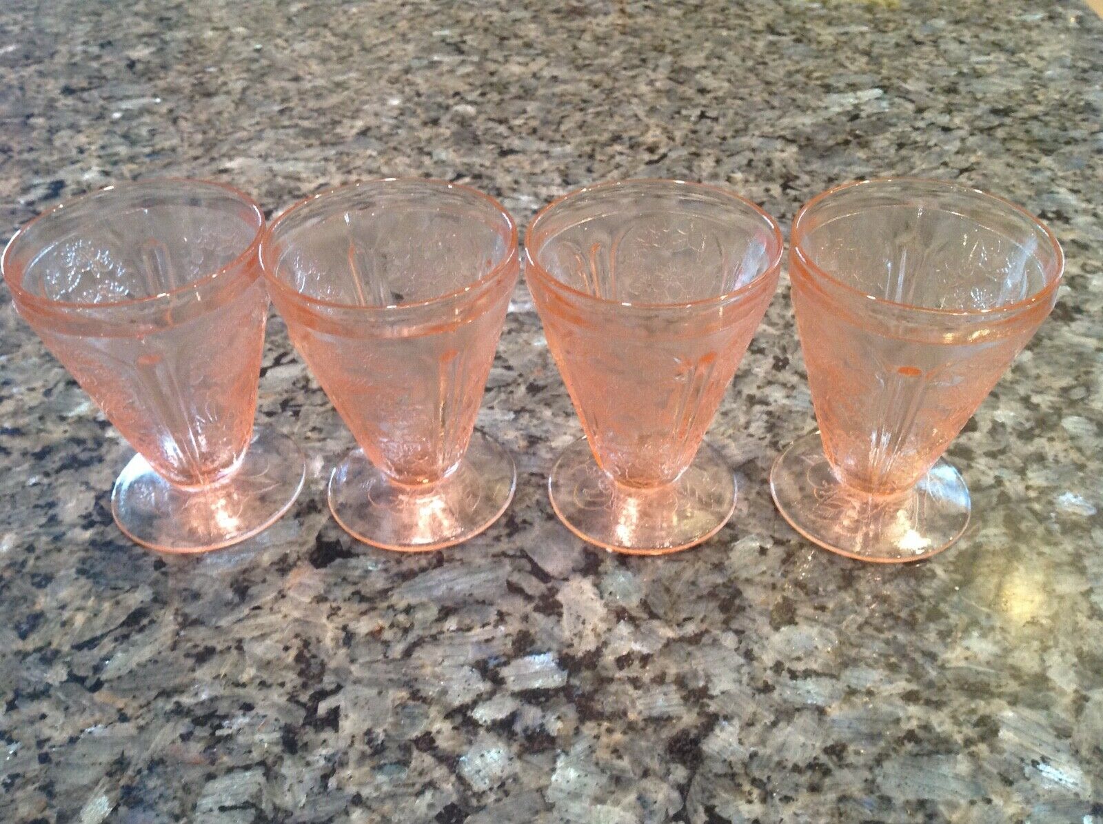 Title (ebay affiliate link): 4 Jeannette Pink Cherry Blossom Round Footed Juice Tumblers 3 3/4" - 4 oz