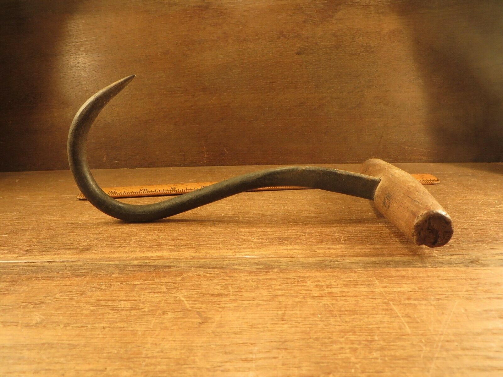 Title (ebay affiliate link): Vintage Antique Farm / Barn / Industrial 9" Hay / Meat Wood Handle Hook Old Tool