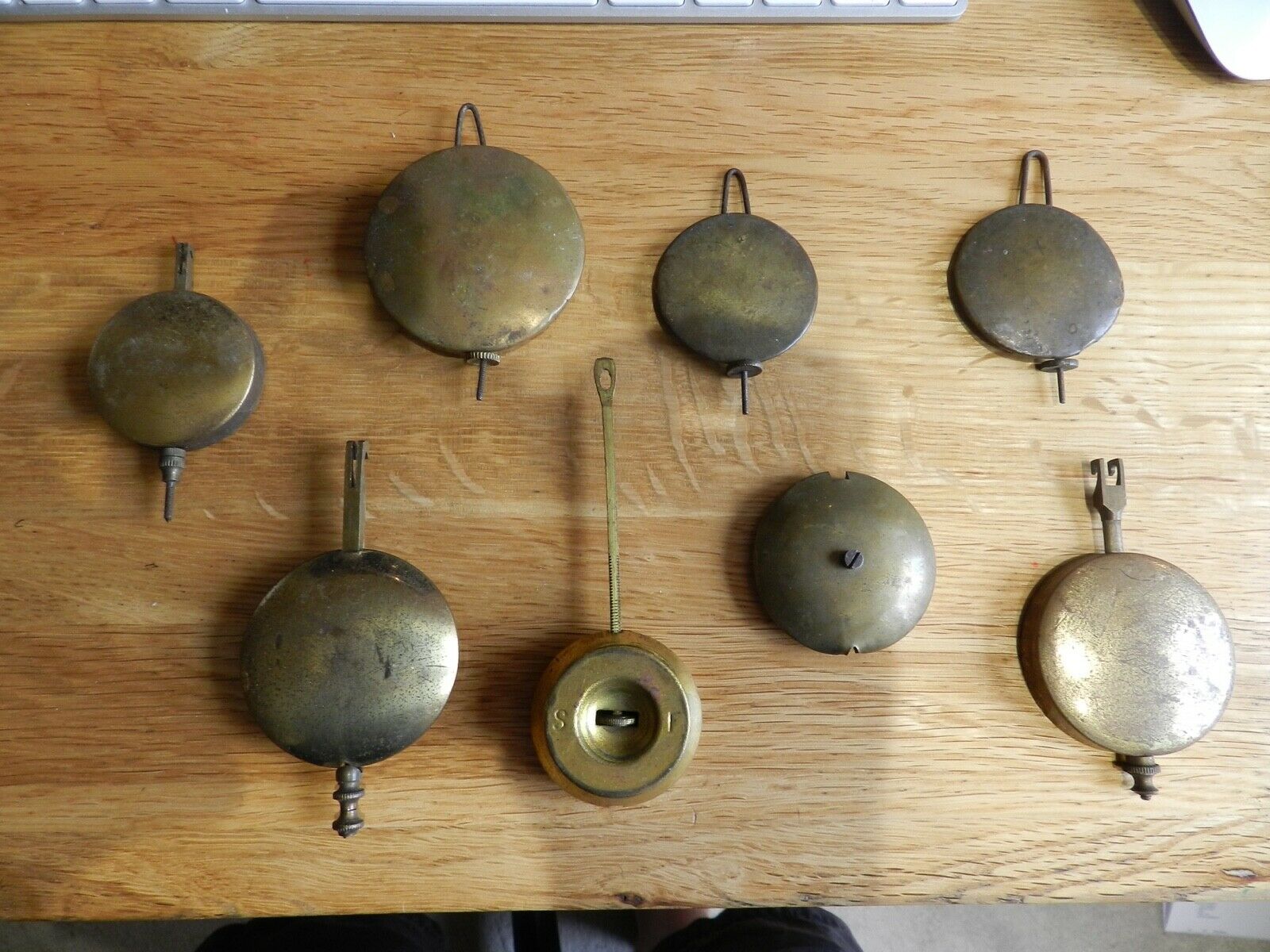 Antique Mantel Wall Clock Brass Pendulums x 8.
