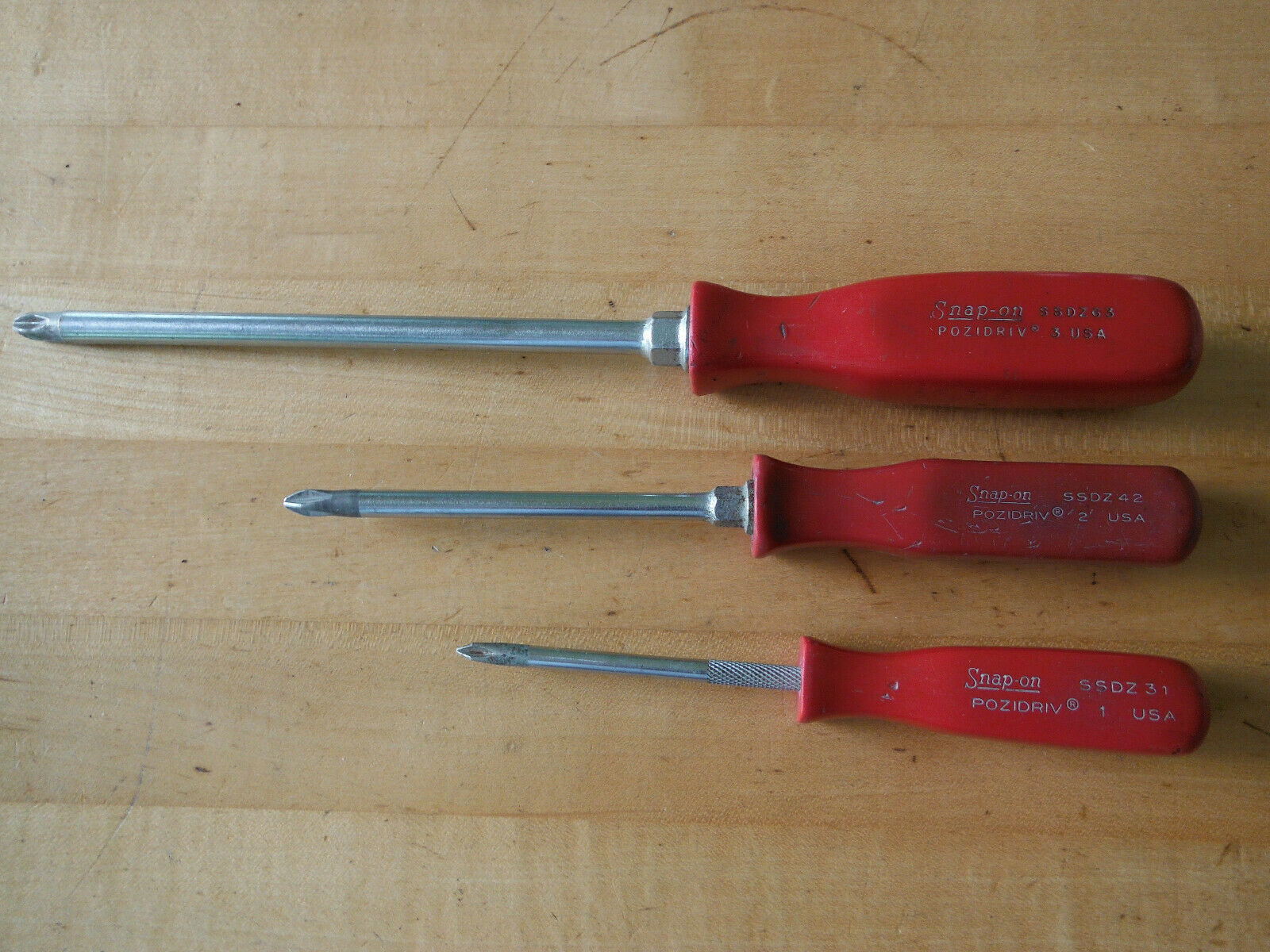 Title (ebay affiliate link): 3 Snap-on Tools SSDZ63, SSDZ42, SSDZ31 Red POZIDRIV Phillips Screwdriver Set