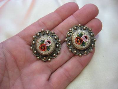 Title (ebay affiliate link): Antique Glass Micro~Mosaic Floral Button~Clip~Earrings