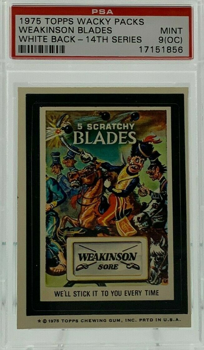 1975 TOPPS WACKY PACKS WEAKINSON BLADES WHITE BACK 14TH SERIES PSA 9 (OC)