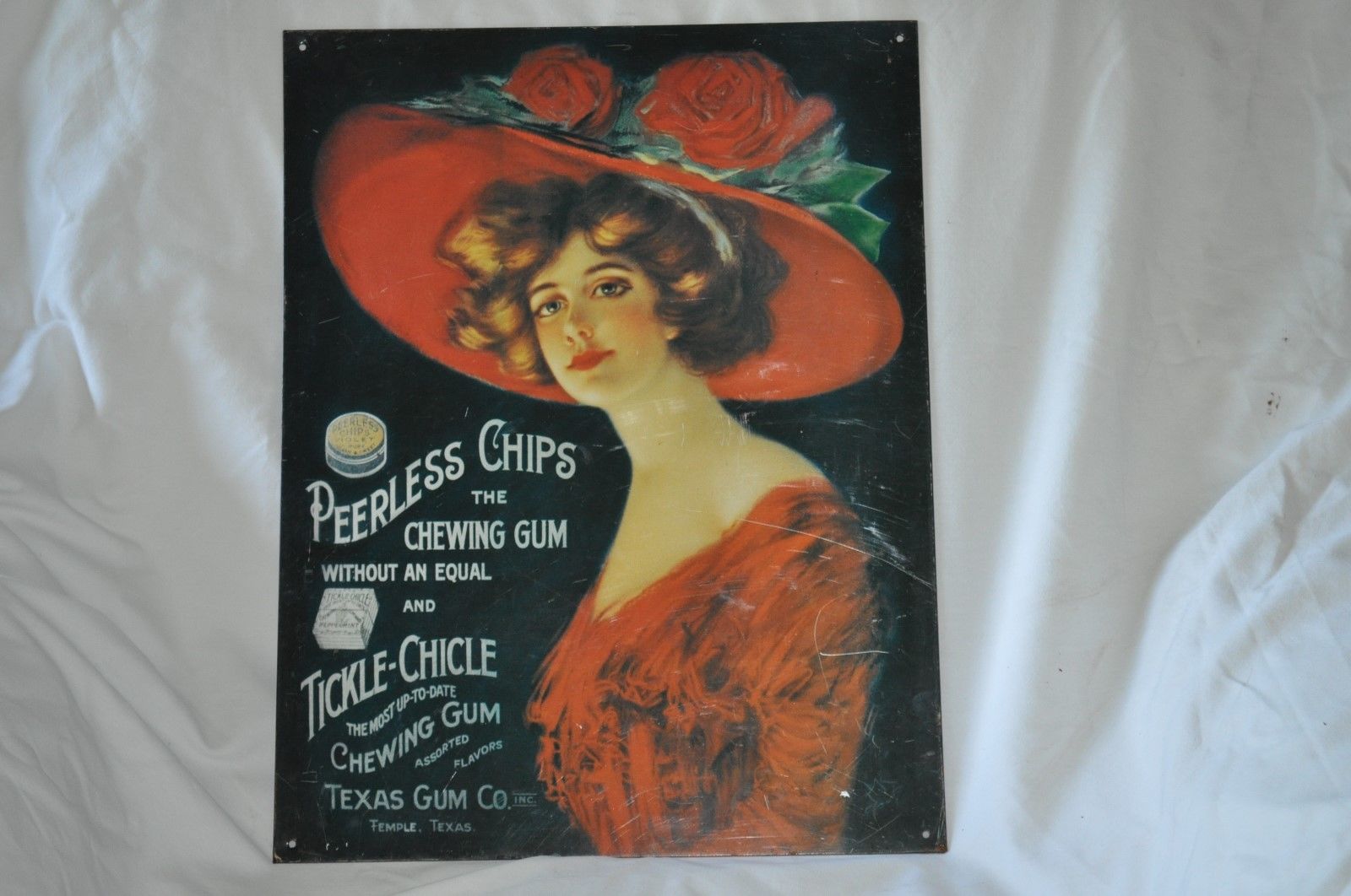 PEERLESS CHIPS CHEWING GUM TEXAS GUM CO. TIN SIGN