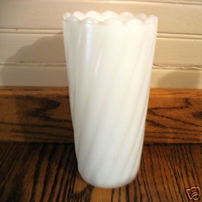 Vintage Milk Glass Vase EO Brody Pie Crust Rim Swirl 7"