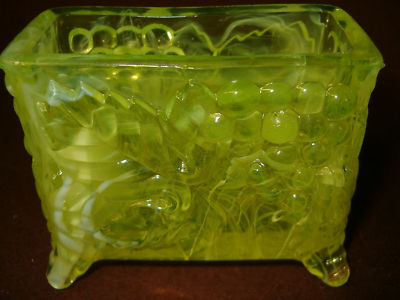 VASELINE MILK SLAG GLASS TOOTHPICK MATCH HOLDER URANIUM