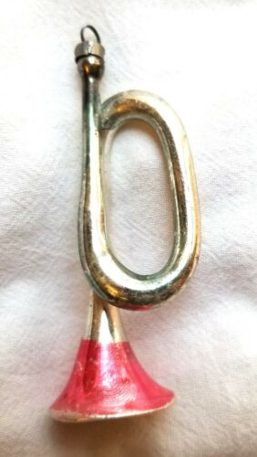 Title (ebay affiliate link): Red, Blue, & Silver Patriotic Horn Whistle. Insert. 1920s German Glass Ornament.