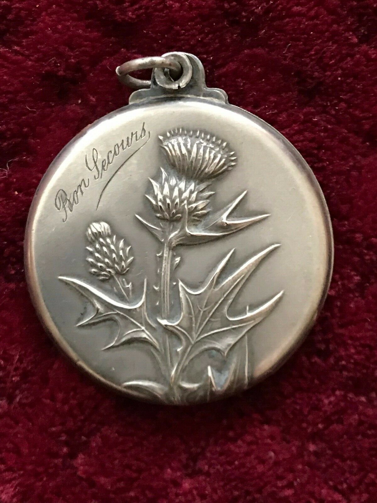 ANTIQUE Art Nouveau FRENCH SILVER HAND MIRROR / PENDANT ENGRAVED "Bon Secours"