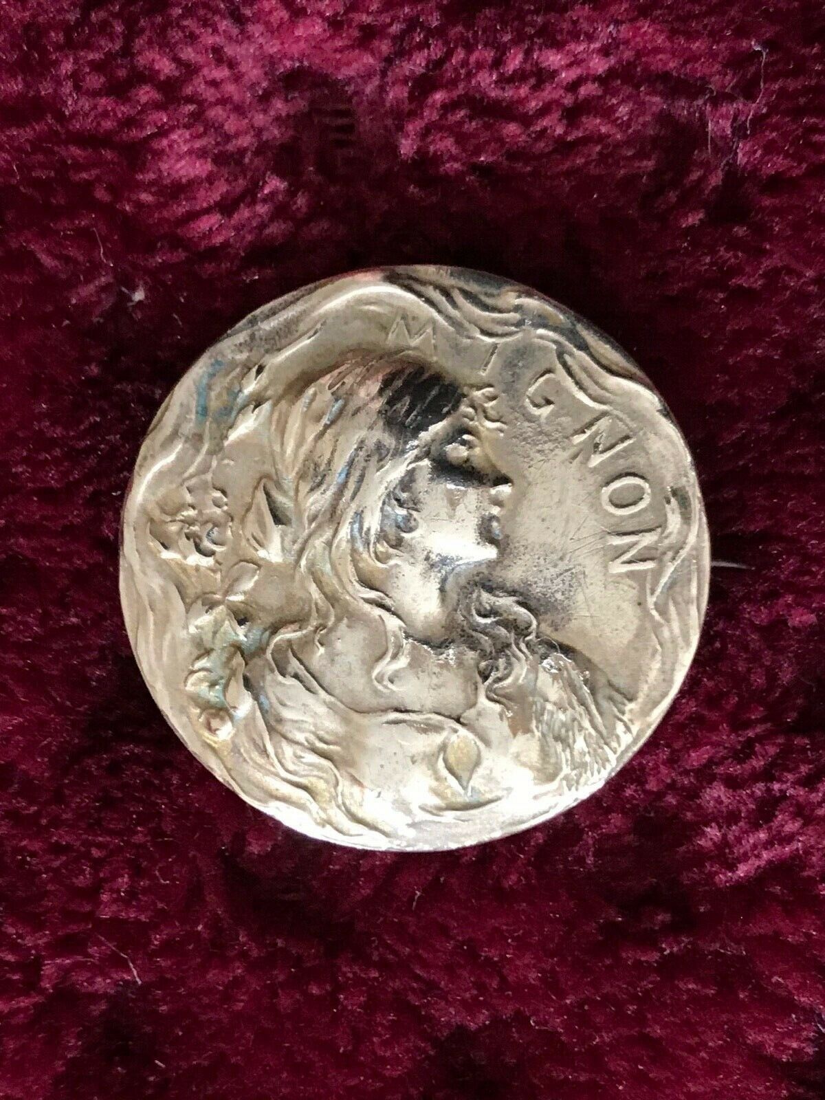 ANTIQUE Art Nouveau FRENCH BROOCH SIGNED Mignon - Ladies portrait