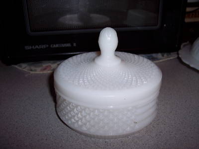 VTG MILK GLASS ENGLISH HOBNAIL COVERED CANDY DISH BOWL