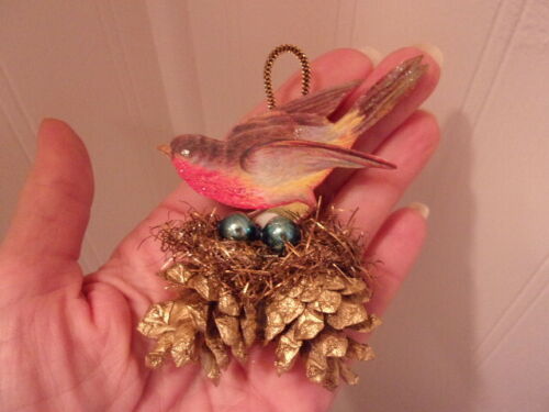 Title (ebay affiliate link): Antique Look Christmas Ornament, BIRD SCRAP, GLASS Eggs, Pine Cones, Handmade