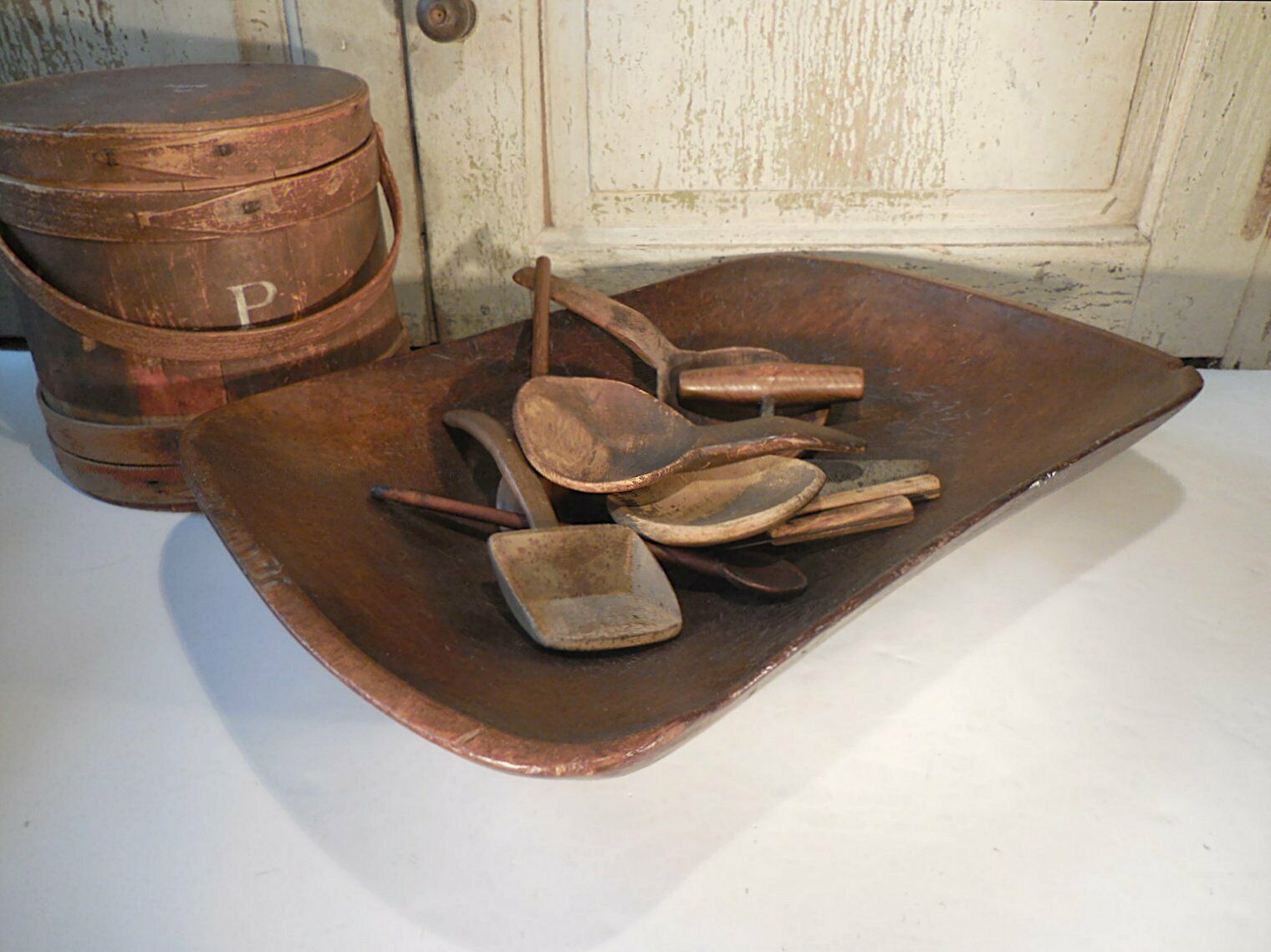 Title (ebay affiliate link): AAFA Primitive Hand Hewn Trencher Antique Wood Dough Bowl