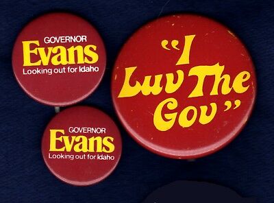 JOHN EVANS MALAD IDAHO GOVERNOR ANDRUS ARMY STANFORD POLITICAL PINBACK BUTTON
