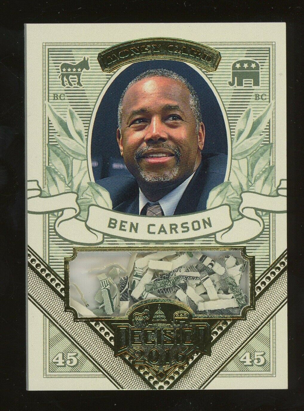 2016 Decision Gold Foil Money Card Ben Carson Shredded U.S. Currency