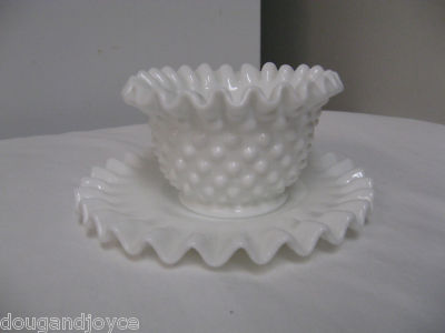 2-pc Older FENTON Hobnail Milkglass BOWL/PLATE-Ruffled