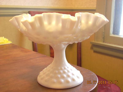 FENTON HOBNAIL FOOTED COMPOTE CANDY DISH MILK GLASS