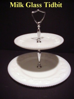 VINTAGE ANTIQUE MILK GLASS 2 TIER TIDBIT TRAY - GRAPES+