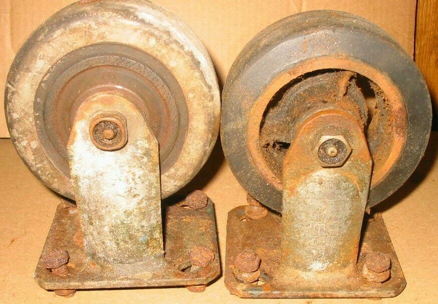 Title (ebay affiliate link): ANTIQUE VTG CASTER CART WHEELS INDUSTRIAL IRON RUBBER BASSICK