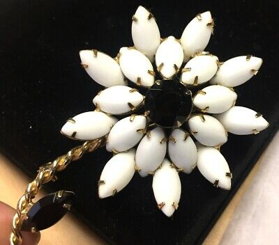 Title (ebay affiliate link): WOW Vintage Brooch Pin JULIANA BIG White Milk Glass Rhinestone Flower lot i