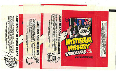 Title (ebay affiliate link): 3 DIFFERENT TOPPS HYSTERICAL HISTORY WRAPPERS