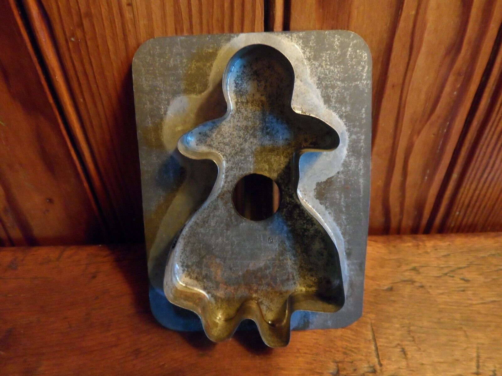 Title (ebay affiliate link): Antique c.1890 Dark Tin Gingerbread Girl Lady or Woman Cookie Cutter PA Folk Art