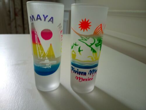 Two Tequila Shot Glasses Riviera Maya Mexico.