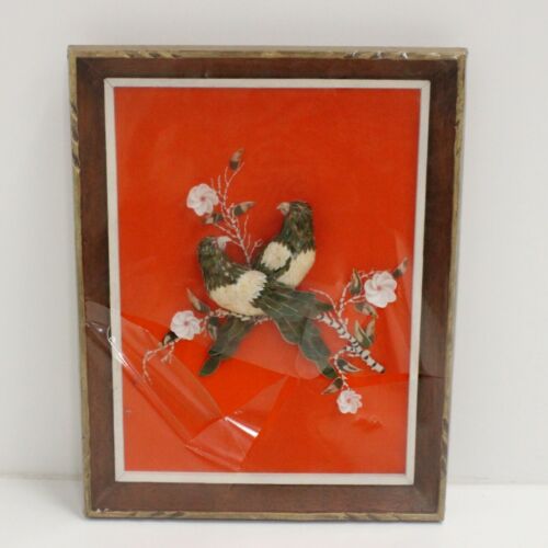Title (ebay affiliate link): Green & White Shell Parrots 3D Relief Picture Mounted in Box Frame #710