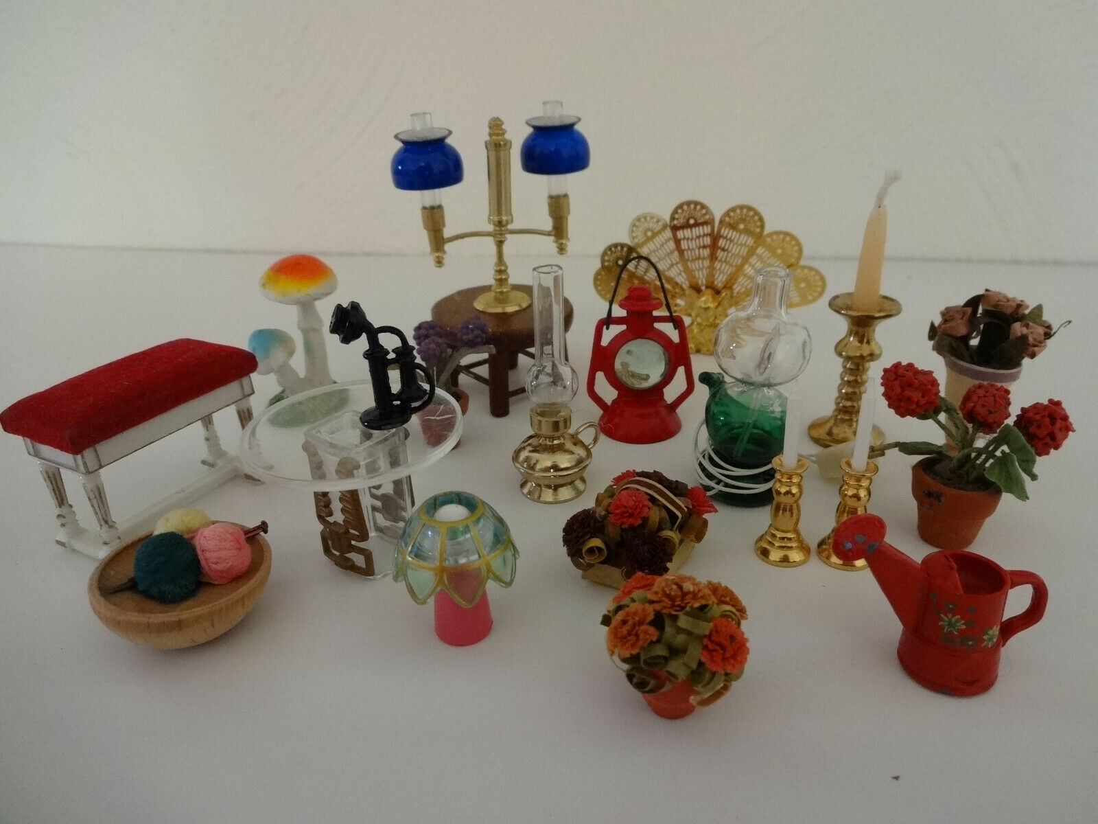 VINTAGE DOLLHOUSE Furniture MINIATURES DECOR Antique glass metal brass LOT 22 PC