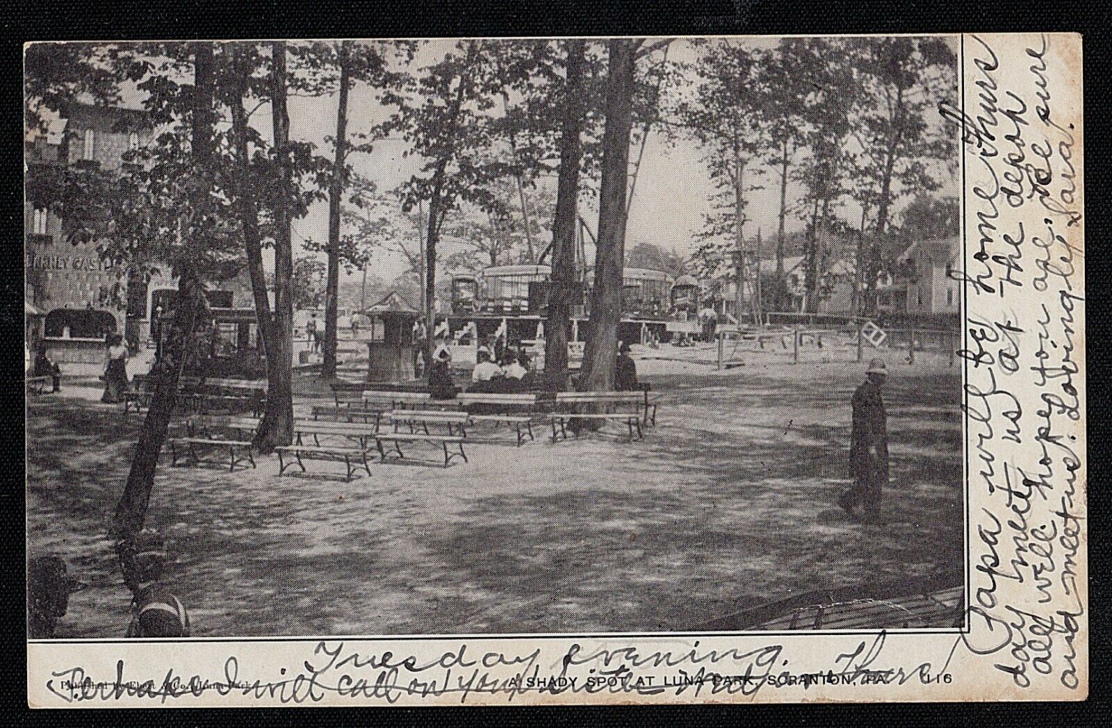 Antique Vintage RPPC Postcard A Shady Spot at Luna Park, Scranton Pa. 1906