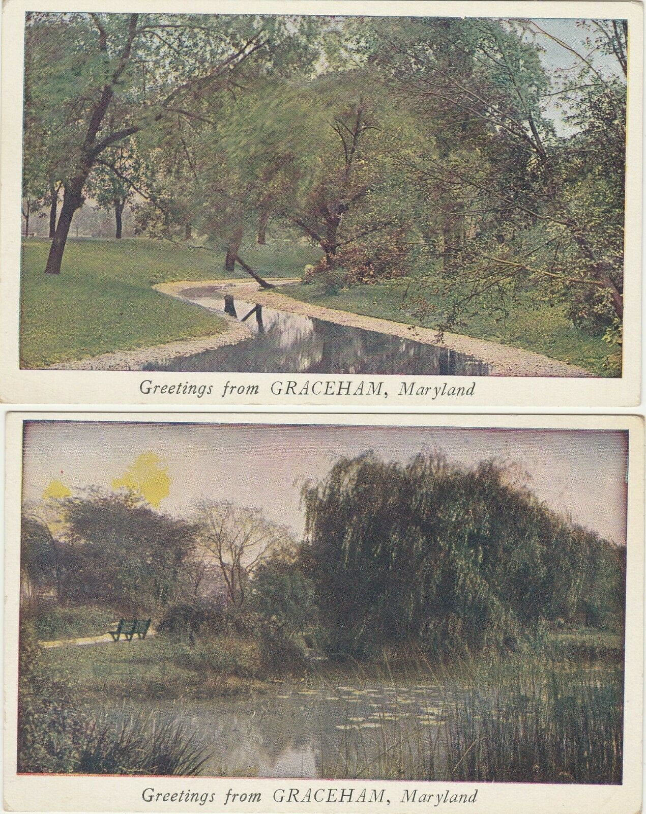 Title (ebay affiliate link): Graceham MD -- Two Postcards -- Greetings From -- Frederick County