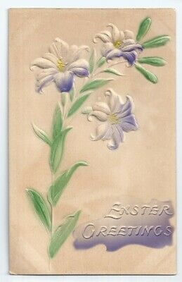 Vintage Easter Greetings Air Brush Postcard, Lilies, Unposted (eb519g)