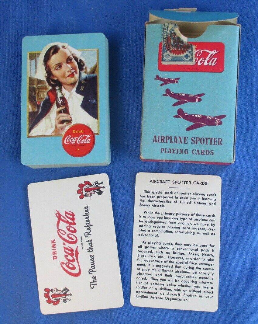 Title (ebay affiliate link): Vintage Coca Cola Airplane Spotter Playing Cards Nurse 1940''s EXC Box Tax Stamp