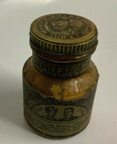 Title (ebay affiliate link): Vintage Paper Labeled Bottle T Hill Mansfields Capillaris Glen Ridge N.J.