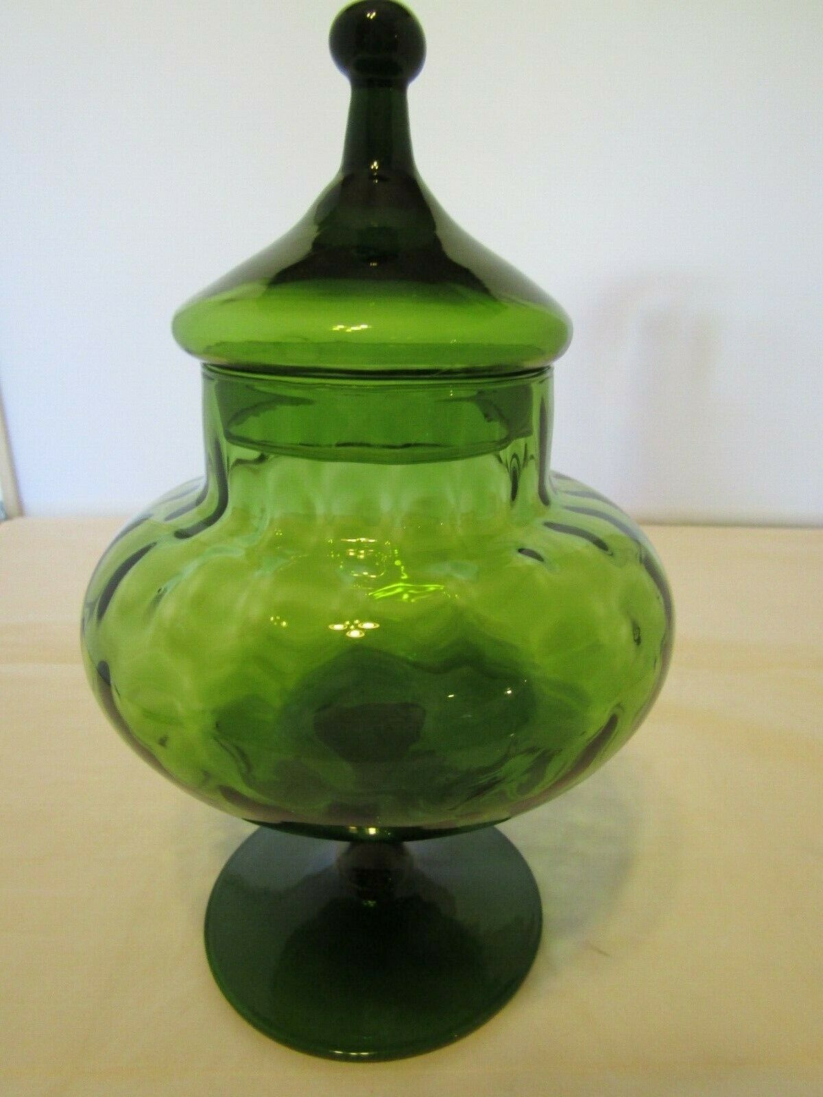 Vintage Green Apothecary Glass Jar/Lidded Candy Jar