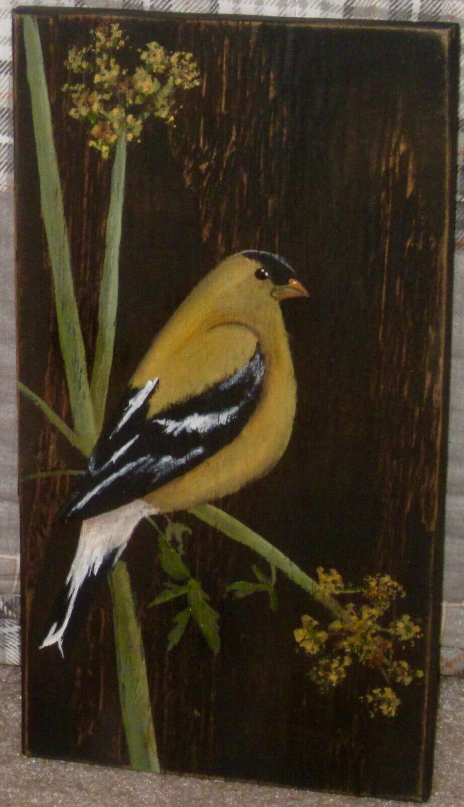 *~*PRIMITIVE*~* HP FOLK ART PRIM YELLOW FINCH *~* BOARD