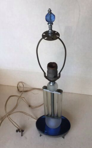 Antique Art Deco Retro Lamp Base -Blue, Frosted, Clear Glass Chrome, Metal