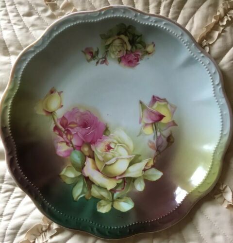 Large Vintage Hand Painted Roses Platter Plate Shabby Chic Beautiful!