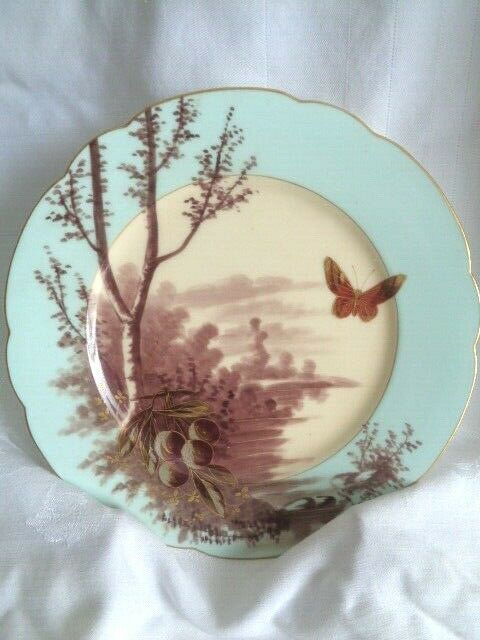 Title (ebay affiliate link): Antique Estate Porcelain Hand Painted Plate Butterfly Trees Fruit Blue/Gilt Trim