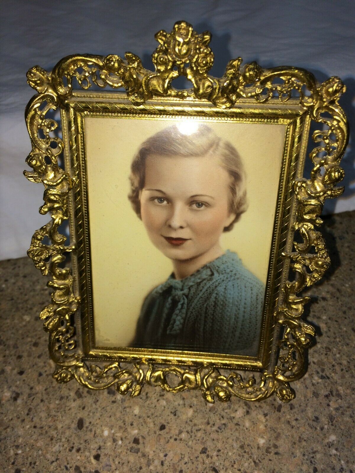 Title (ebay affiliate link): Vintage "Brass" 3X4 Picture Frame Cherubs & Bubble Convex Glass Small Easel Back