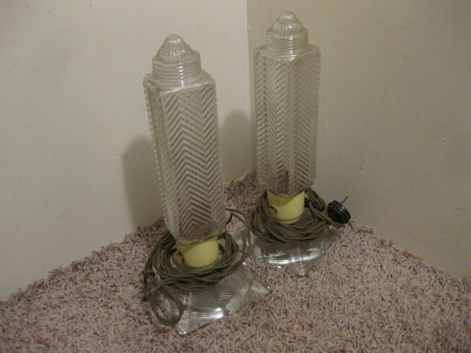 ANTIQUE GLASS LAMPS PAIR OF COLUMN LIGHTS 12" TALL