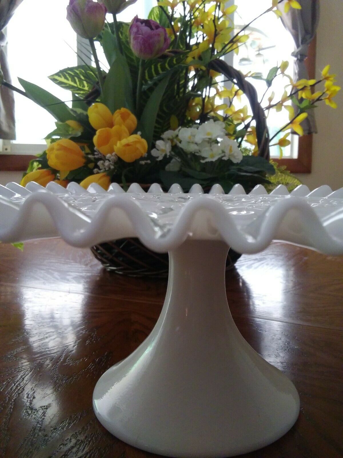 Beautiful Spanish Lace l, Ruffeled, Milk Glass Cake Plate