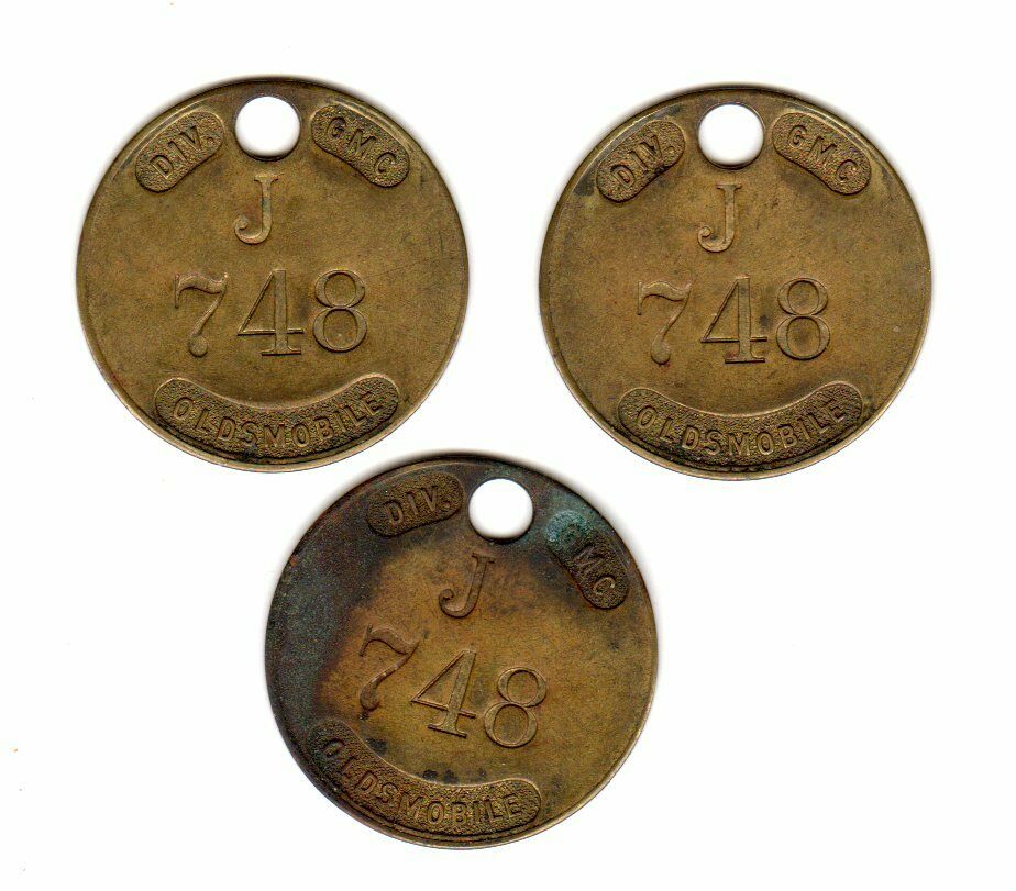 3 Brass Oldsmobile Division GM Tool Check Tags