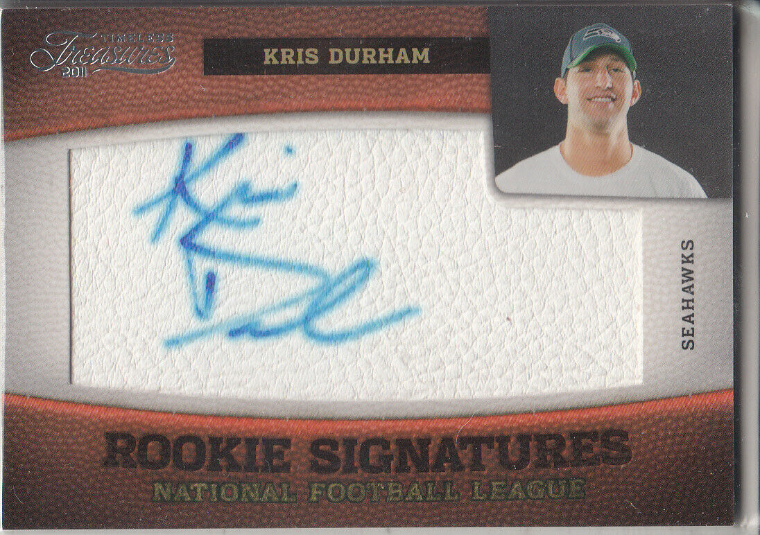Title (ebay affiliate link): 2011 PANINI TIMELESS TREASURES KRIS DURHAM ROOKIE SIGNATURES AUTO /299 #180