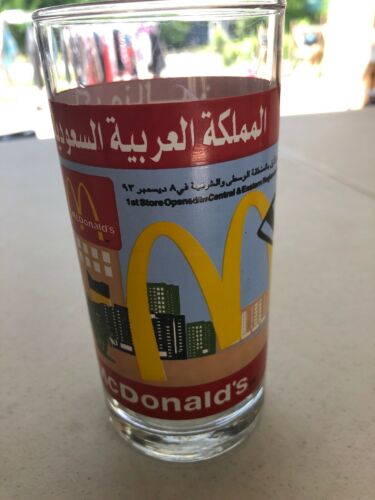 McDonalds Coca Cola First Store Opening Comemartive Glass Cup Saudi Arabia RARE