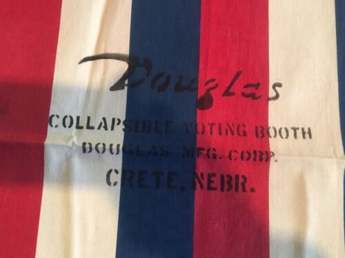 Title (ebay affiliate link): Vtg 1950s Red, White, Blue VOTING BOOTH CURTAIN Political Button American Flag