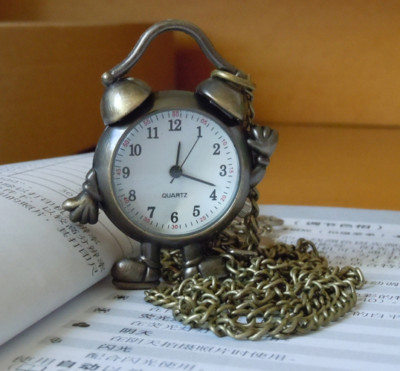 Cute!Antique Bronze clock Robot Necklace pocket watch