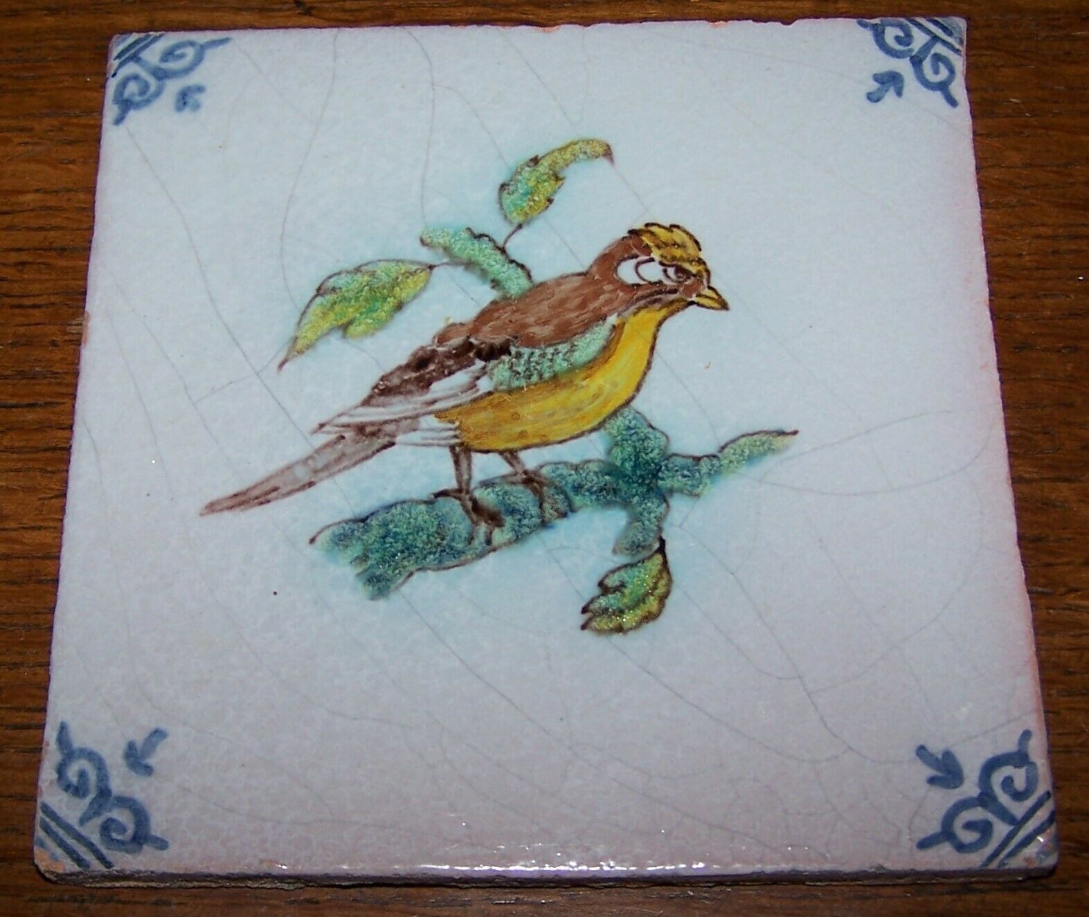 Antique Dutch Delft Tile Bird Polychrome