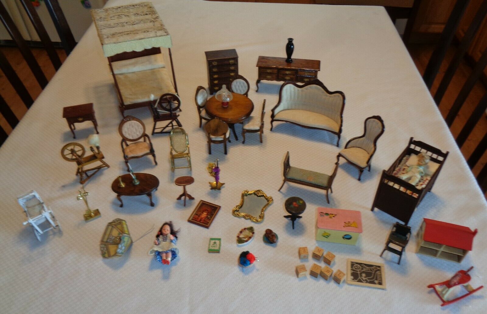 Title (ebay affiliate link): Huge Lot of Vintage Wooden / Metal Dollhouse Furniture 40+ Pcs 1:12 Scale