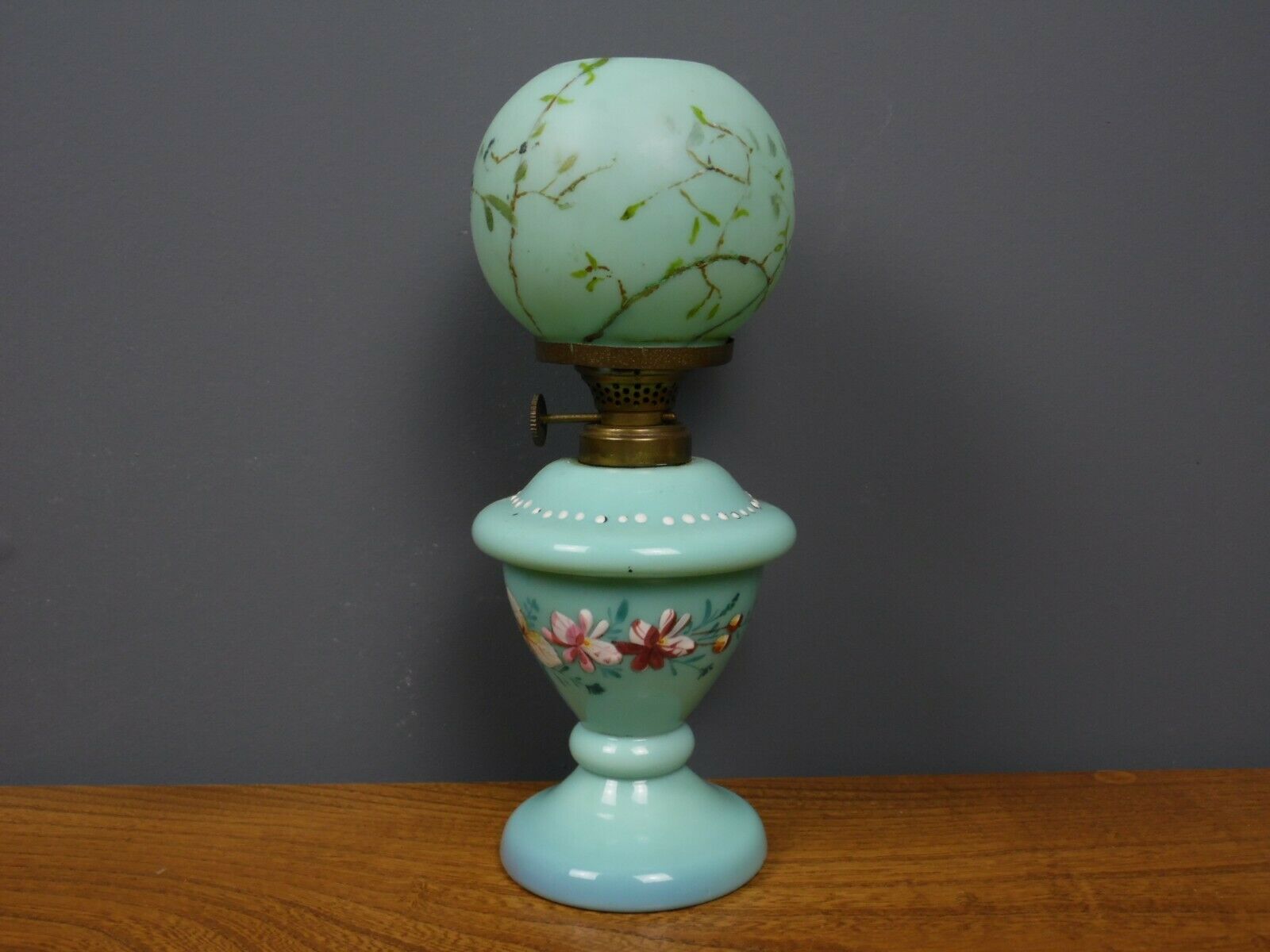 Title (ebay affiliate link): a/f Antique opaque light blue glass miniature oil lamp
