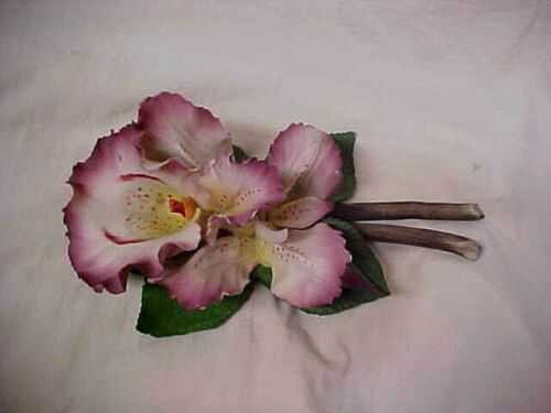 Vintage Capodimonte Sculpted Purple yellow Porcelain Orchid Flower Italy e